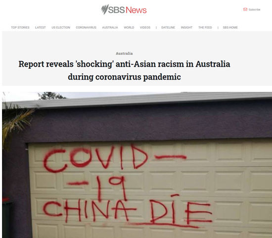 比如,澳大利亚官办的SBS新闻网在去年7月的一篇报道就使用了“报告显示在新冠疫情期间澳大利亚存在着惊人的反亚裔种族主义”这一极为惊悚的标题,报道了该国一个亚裔组织发布的关于该国种族主义问题的报告。