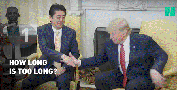 担任总统期间,特朗普在与男性领导人握手时可没有任何风度。