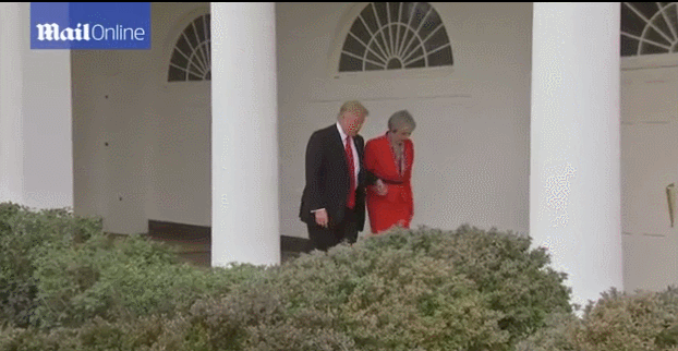 英媒:被特朗普强行拉手后 特蕾莎-梅想马上给老公打电话