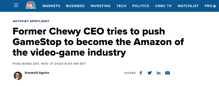2020年11月,科恩致信游戏驿站董事会,建议他们尽早战略转型,将游戏驿站转型为电商。今年1月11日,科恩带两名Chewy公司的前高管加入游戏驿站的董事会。不少投资者相信科恩将会把之前成功模式复制到游戏领域。