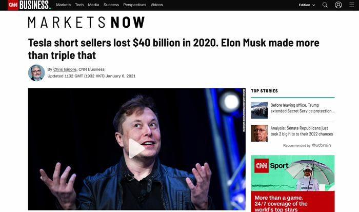但随着特斯拉在中国建厂,中国市场的庞大盈利前景使特斯拉股价飙升,做空机构的账面损失超过400亿美元。