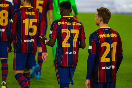 值得注意的是,当天,巴塞罗那队球员的球衣背后均印有他们的中文名字。该俱乐部13日在官网预告了这一信息,并表示此举是为了“庆祝中国春节”。