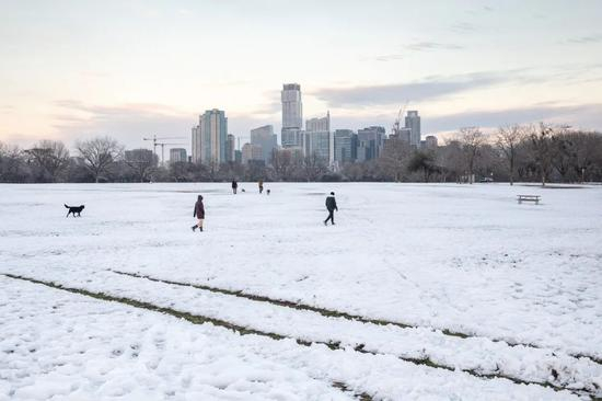当地时间2021年2月17日,美国得克萨斯州奥斯汀,当地迎来暴风雪天气,造成交通中断与电网瘫痪