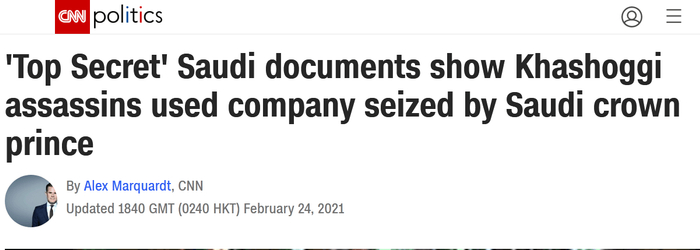 2018年10月2日,生前为《华盛顿邮报》等多家媒体供稿的卡舒吉进入沙特驻土耳其伊斯坦布尔领事馆后再也没有出来。同月20日,沙特检察机关宣布卡舒吉死亡。同月25日,沙特检察机关宣布卡舒吉死于谋杀。之后,有多个情报声称沙特王储本·萨勒曼应对此事负责。