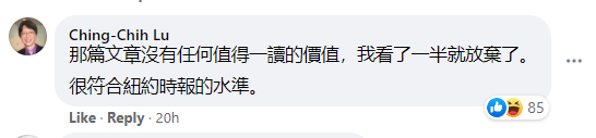 但奇怪的是,尽管这篇文章在西方的左翼群体中颇受支持,一个香港的知名公知却对这篇文章乃至刊登这篇文章的《纽约时报》极为不满。