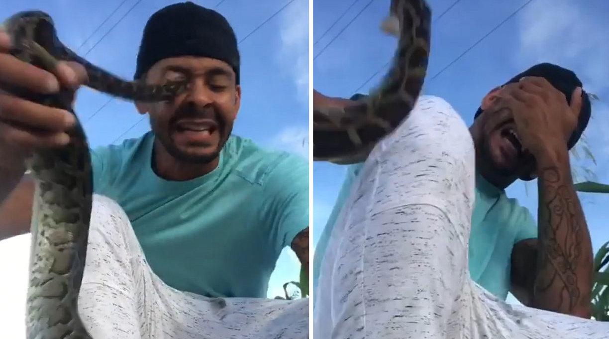 鲜血直流!美国男子野外抓到缅甸蟒兴奋录视频 突然蟒蛇朝他眼睛扑来