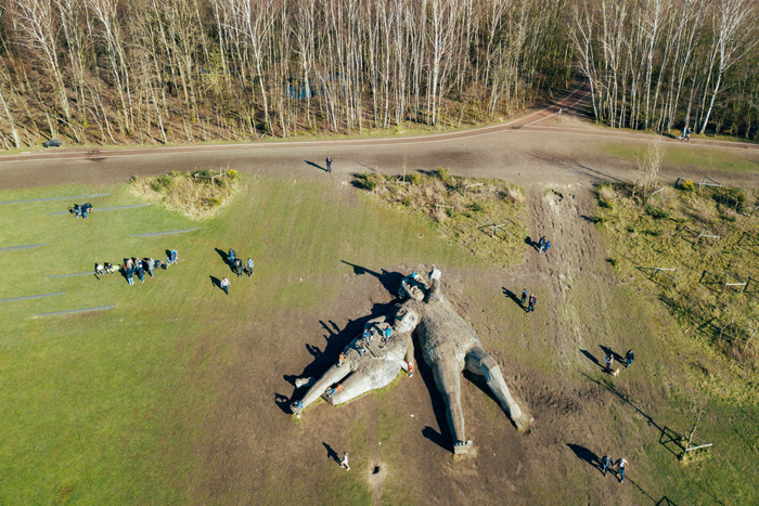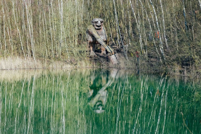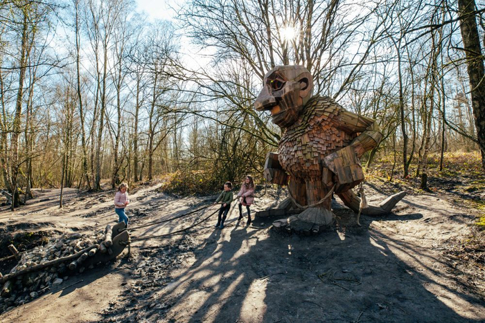 ↑比利时德舒尔森林公园——丹麦艺术家托马斯·丹博携团队利用废弃的可回收木材制成七个“巨人”雕塑,旨在展示自然之美和对自然资源的尊重。