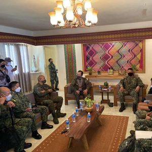 △菲律宾武装部队总参谋长接见被营救的印尼少年凯鲁丁(图片来源:《马尼拉公报》)