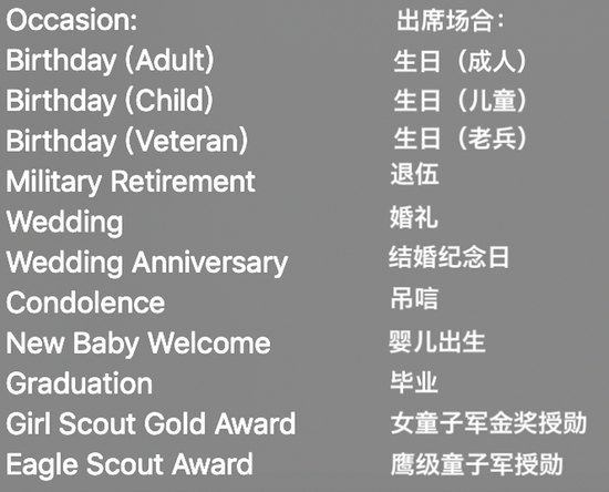然后,就会在Occasion中,看到许多选项。