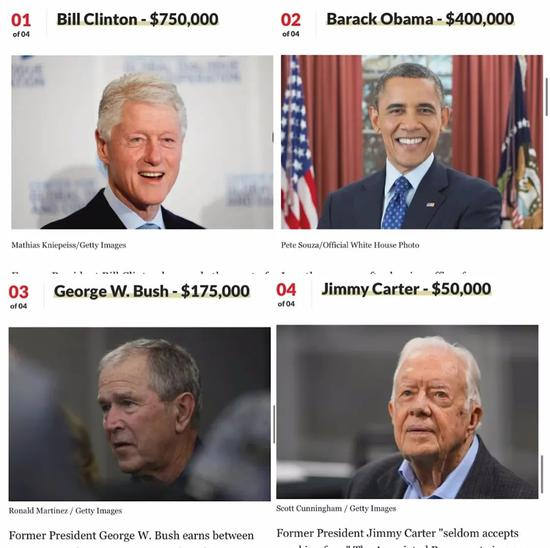 据2020年的公开价格显示,克林顿是最贵的一位前总统。前总统奥巴马的单场演讲收费也高达60万美元。