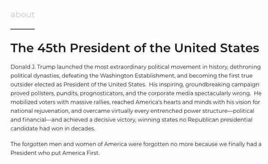 网站的主页面上,用了一大段文字介绍特朗普——