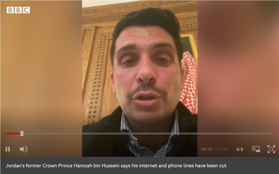 同一天,视频发布之前,约旦军方刚刚发声明否认了逮捕哈姆扎的传闻,但其措辞颇为微妙——哈姆扎“被要求停止针对国家安全和稳定的活动”。