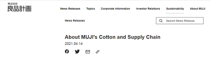 报道说,良品计画承认收到了许多有关该公司使用新疆产品的询问。在当地时间14日举行的新闻发布会上,良品计画社长兼执行董事松崎晓表示,该声明已经是集团做出的最全面的解释,他本人无法提供有关该公司使用新疆棉的更多信息。