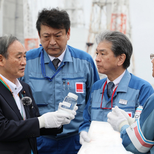 (图说:2020年9月26日,日本首相菅义伟视察福岛核电站,询问东京电力公司工作人员核废水能否饮用,工作人员回答稀释后就可以喝,但菅义伟最后还是没喝。图/日本首相官邸网站)