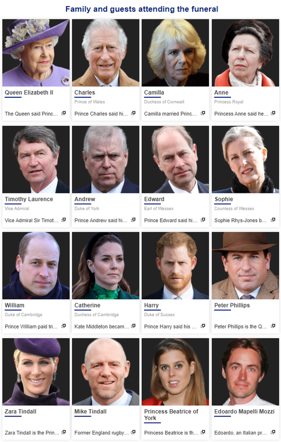 此外,因为年龄过小不适合在电视直播中出现,包括夏洛特公主和乔治王子在内的王室重孙辈成员不会出席葬礼。