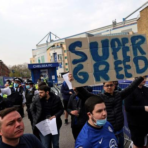此前,就有英国球迷拿出“足球不是TV秀”的标语进行抗议。英超历史射手王阿兰·希勒也在BBC节目中指出:“欧超并不是竞赛,而是关起门玩。”