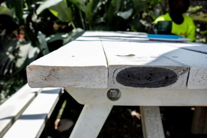 玛丽·基亚图赫雷是恩达西米埃的客户之一。她告诉记者,她更喜欢用塑料围栏,因为白蚁不能啃食掉塑料杆。