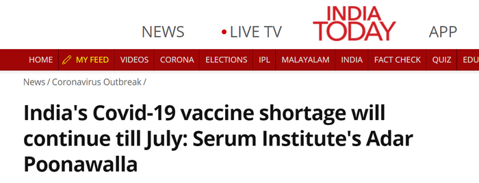 警惕!印度血清研究所CEO:印度“疫苗荒”将持续至7月