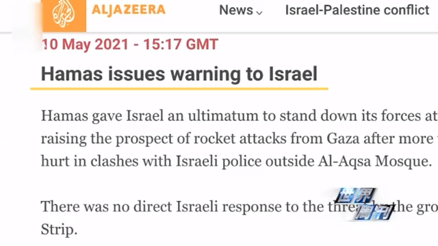 10日下午,管辖加沙地带的巴勒斯坦伊斯兰抵抗运动哈马斯的高级领袖发出最后通牒,要求以色列警察于当天傍晚6点前撤离阿克萨清真寺,以及位于东耶路撒冷的巴勒斯坦人聚居地。
