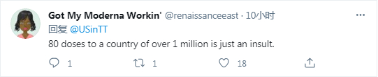 @Got My Moderna Workin‘:对于一个有超过100万人的国家而言,80剂(瓶)是一种侮辱。