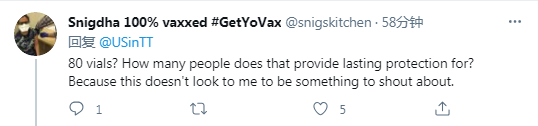 @Snigdha100%vaxxed#GetYoVax:80瓶?这能为多少人带来持续保护?因为这在我看来不是什么值得炫耀的。