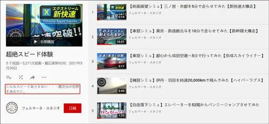 在@FERMATA STUDIO 主页,有专门的“超速体验”播放列表,简介是“现实没有这样的速度,为你展现异次元的世界”。