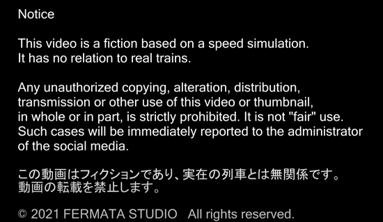 在这些模拟视频的开头,都会有一则声明,称“该视频是一个基于速度模拟的虚构作品,与真实的列车没有关系”。