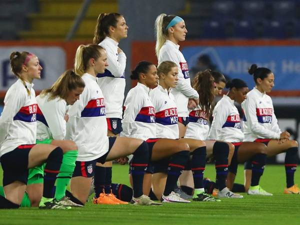 2019年11月,美国国家女子足球队9名球员在奏国歌时跪地抗议。
