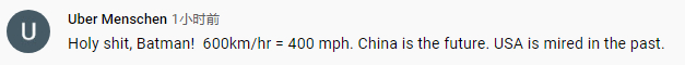 “天啊,蝙蝠侠! 600公里/小时=400英里/小时。中国是未来,美国深陷于过去。”