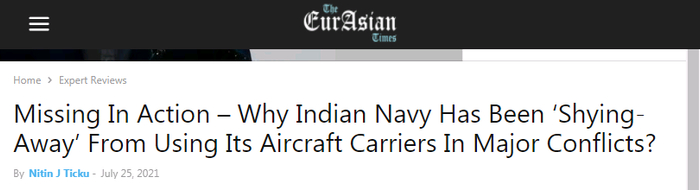 《欧亚时报》25日称,印度海军耗资巨大组建的航母编队,却因为种种原因,半个多世纪以来一直保持着在重大战争冲突中缺席的“悠久传统”。