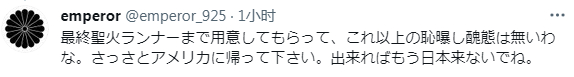 不过由于大坂直美是混血儿,3岁开始就在美国生活,有一部分日本网友对她的态度十分刻薄,有日本网友辱骂称,“之前给你准备了点燃主火炬的大任,没有比(止步第三轮)更加耻辱的丑态了,赶紧滚回美国吧。可以的话不要再来日本”↓