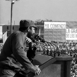 在古巴蔗糖收获季节开始后,古巴领导人菲德尔·卡斯特罗向集会的群众发表讲话(1970年资料照片)。新华社发
