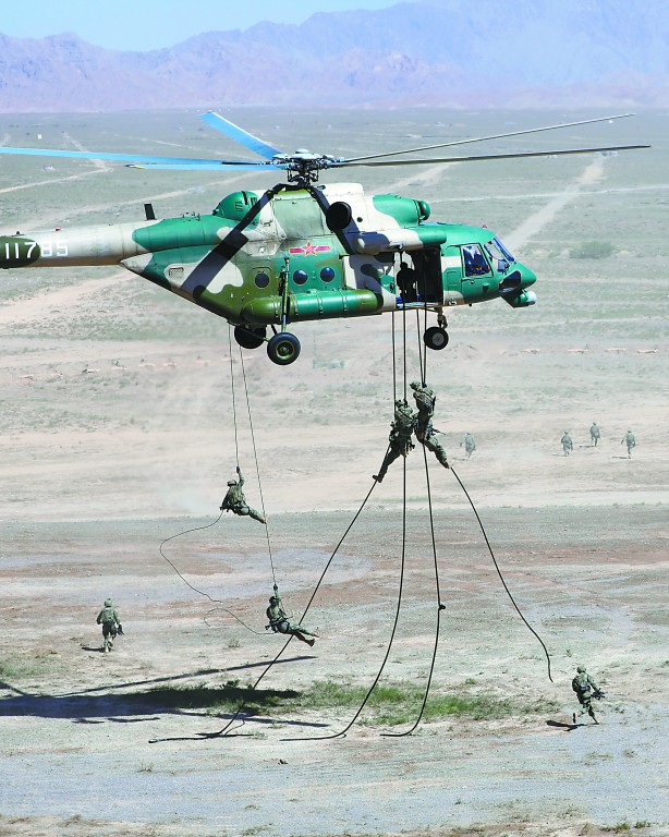 值得关注的是,此次演习实战化水平很高。其中装甲突击群主要担负大型装备远距离地面突击任务,在同一时间、相同空间,与空军、陆航等空中力量协同配合,对恐怖组织的地面武装力量和工事实施高速进攻和火力摧毁。央视画面显示,装甲突击群在演练中火力密度高,同一时间、同一地域每分钟可达百发,进一步锤炼了合成作战能力。 演习中,人员和装备战场投送采取多机型编队的方式,展开大规模集群伞降和重型装备空投新模式。央视画面显示,特战队员在索降时采用“1机6绳”的方式,让特战队员得以最大限度缩短用时,抢先一步占领攻击阵位。装备投送更是如此,飞行员需在1分钟内将多辆突击车运抵作战地域,实现最短时间内作战区域的人装快速结合。