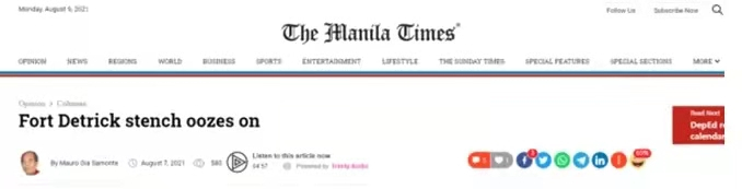 △《马尼拉时报》评论文章《德特里克堡散发着恶臭》和《现在全世界都在呼吁:调查德特里克堡!》