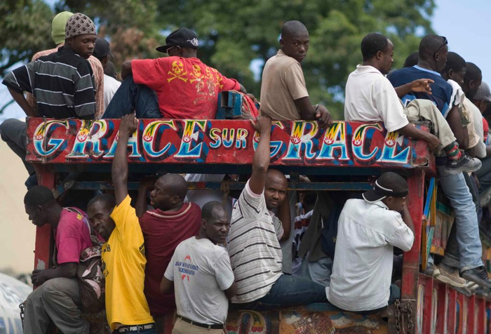 2010年1月14日,当地居民试图离开太子港。新华社记者戴维·德拉帕斯摄