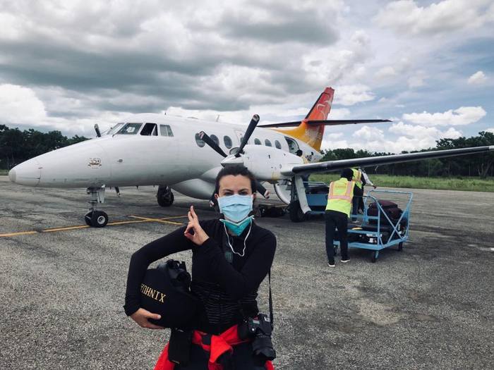 2021年8月16日,新华社记者戴维·德拉帕斯和卡罗琳娜辗转飞抵莱凯。