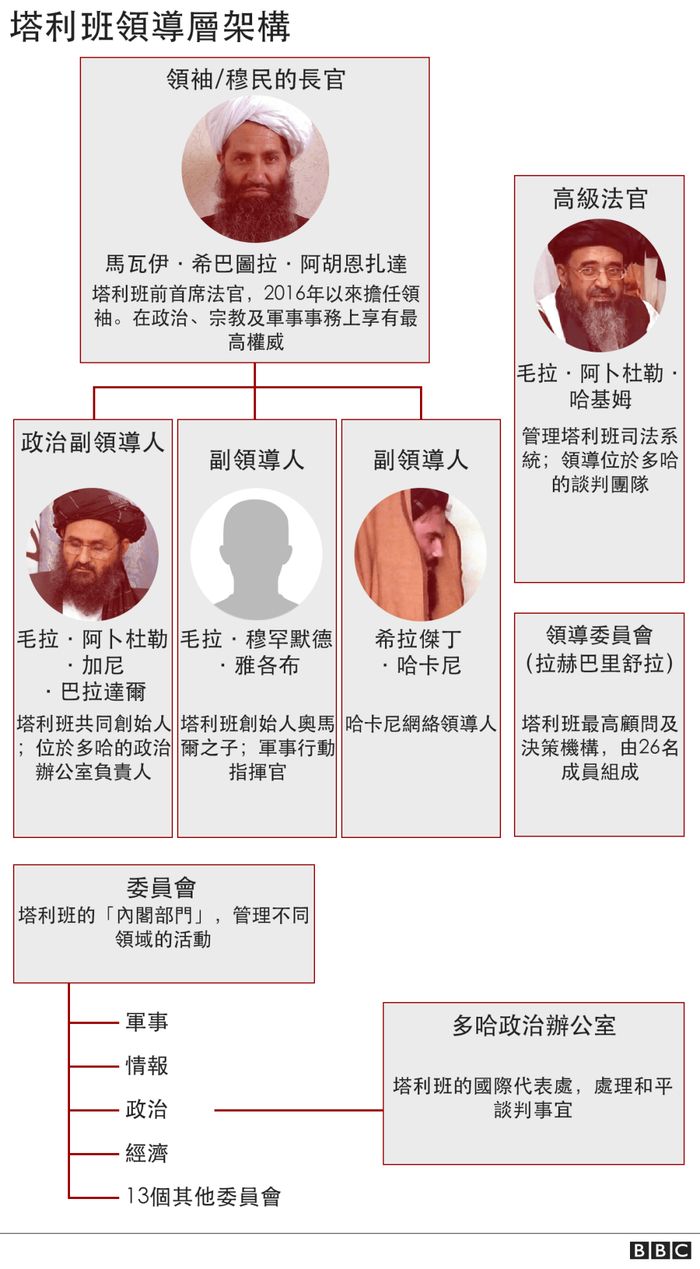 此前一天,哈希米表示,塔利班最高领导人希巴图拉·阿洪扎达将扮演类似总统的角色,身处委员会之上,全面掌管大小事务。
