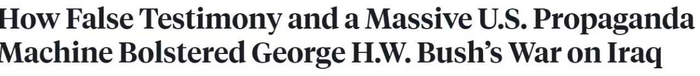 △美国OZY媒体公司网站文章《海湾战争中的弥天大谎》:促使美国公众和国会支持发动海湾战争的一个关键转折点是科威特女孩纳伊拉赫的可怕证词。问题是,纳伊拉赫的故事是虚构的。