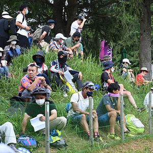 2021年7月26日,观众在日本静冈县的赛道边观看山地自行车比赛,在奥运会期间,东京地区及周边的比赛场馆不允许观众进入。图|新华社