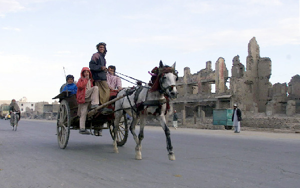 ”穿越受损严重的喀布尔老城区。