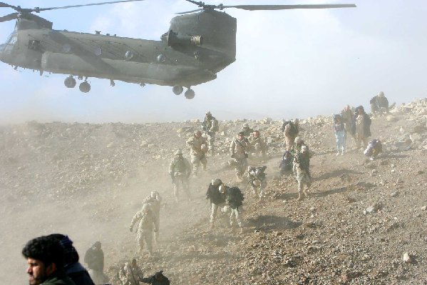 ↑2002年7月2日,美军军官准备从喀布尔飞往坎大哈,调查美军空袭乌鲁兹甘省致平民伤亡事件。新华社记者赵鹏摄