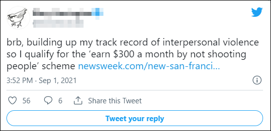 旧金山市市长伦敦·布里德称这项计划不是贿赂罪犯,而是激励这些人保持动力,给他们机会改变生活,但众多美国网民纷纷嘲讽,甚至还有人调侃表示要建立自己的暴力记录,好去参加这个“不开枪每月挣300美元”的计划。