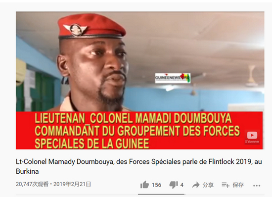 而一段2019年的新闻视频显示,杜姆布亚在2018年成为几内亚陆军特种部队的负责人后,曾于次年在西非的毛里塔尼亚率领部队接受了美军的训练,并在视频中对美国的援助表示感谢。