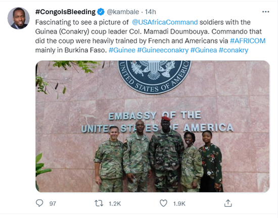 由于几内亚的邻国马里曾在三个月前爆发了今年内的第二次政变,而该国政变的领导人同样接受过美军所谓的“反恐训练”,因此尽管美国在几内亚政变发生不久后就发布了谴责政变的声明,但还是有不少网民和旁观者认为,这次政变背后有“美国的影子”。