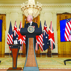 “这是美国在构建印太版北约过程中采取的又一关键步骤。”中国外交学院国际关系研究所教授李海东16日对《环球时报》表示,美国一直企图在亚太搞一个类似北约的多边联盟架构,现在的这个三方联盟是前站。在美国安全观念里,美英澳同属盎格鲁撒克逊文化,都是白人主导的讲英语的国家,三方联盟是美国在亚太最核心圈子;稍外围一点的是美韩、美日等诸多双边联盟;美日印澳四方机制则是更外围一些的机制,印度还算不上美国正式盟国。美国正试图将这些不同的组合打造成其主导下的一个相互关联、相互支撑的完整联盟体系。