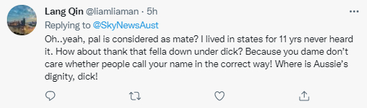 “哦是的,‘伙计、家伙’是‘朋友’的意思?我在这里住了11年,从没听说过。。。 因为你压根就不在乎人们是否应该正确称呼你!澳大利亚的尊严在哪里,混蛋!”
