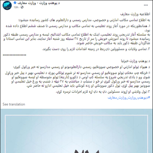 塔利班发言人比拉尔·卡里米(Bilal Karimi)告诉《华盛顿邮报》(The Washington Post),他不知道教育部有关为男孩重开学校的决定,但学校对女孩“关闭”。他补充道,“我们致力于男孩和女孩的教育,致力于有一个受过教育的一代”。