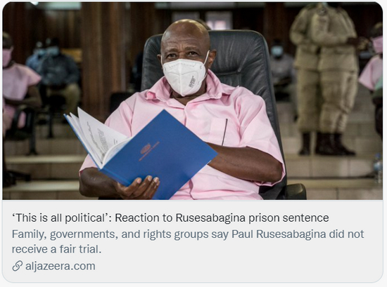 作为卢旺达总统卡加梅的批评者,鲁塞萨巴吉纳长期生活在海外,他还曾表示自己是卡加梅潜在的政治挑战者。其家人称,审判是一场骗局,鲁塞萨巴吉纳此前被骗上飞机,随后被强行带往卢旺达受审。