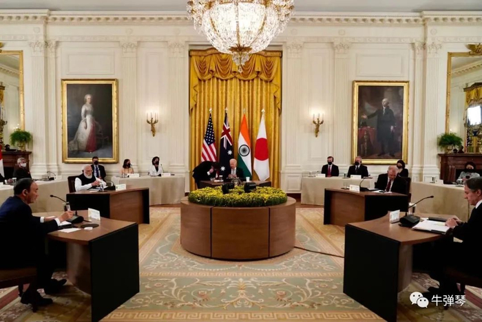 4,哦,别忘了,不久前,美国、印度、澳大利亚、日本举行四国峰会,拜登特别摆谱,摆了五张桌子,布林肯还和莫迪、菅义伟等平起平坐,大家都没戴口罩……
