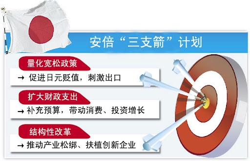 通过大量印钞增加金融市场流动性,推动日元贬值增加企业利润,控制国债市场,由政府为高额负债担保,利用金融市场的上涨,让社会资本跑赢通胀。。。。。。“安倍经济学”一度使日本经济摆脱长期的低迷状态,实现强劲增长。